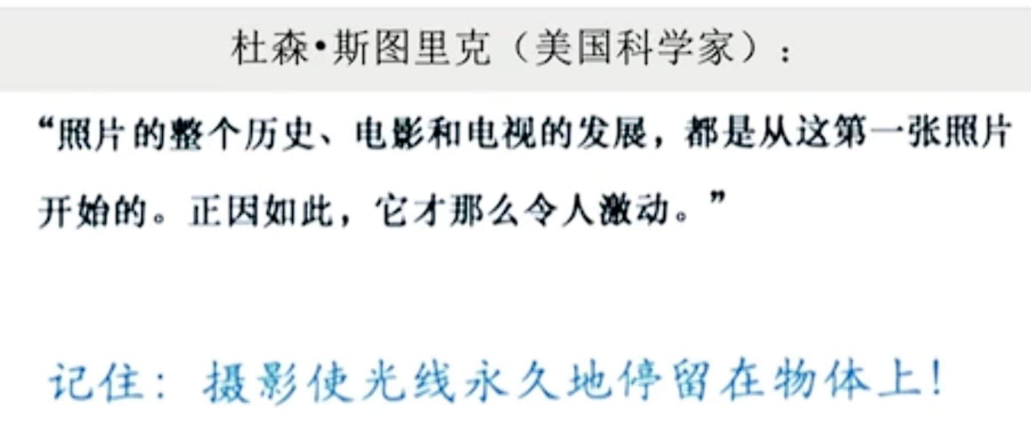 - 第一张照片的意义: 它并非艺术品,而是一个科学证明。它向世界宣告:人类有能力将光线在物体上反射的状态“捕获”并永久固定下来。这标志着人类“驯服”了光线。