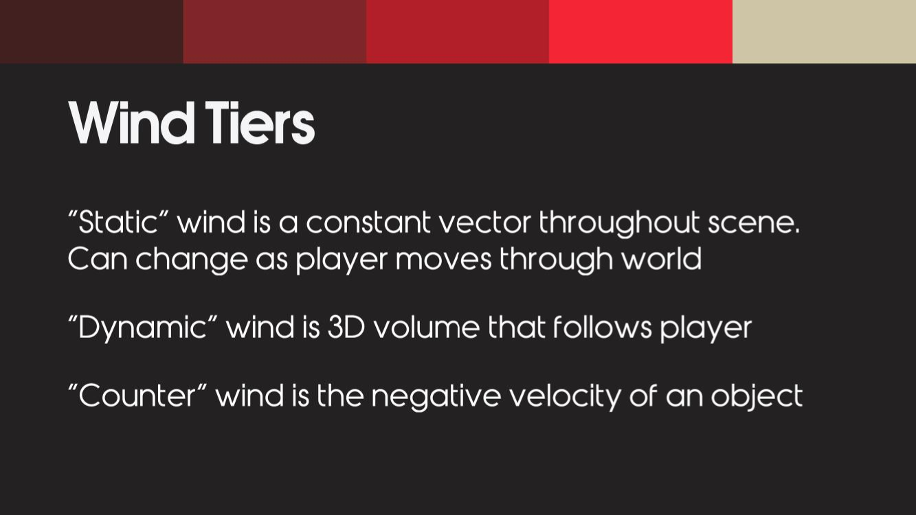 1. 核心架构与管线设计 原理 战神的开发者将全局风,分级为 3 部分 [Wind Tiers] 全局静态风 +动态风 -物体移动速度